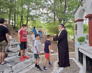Με την ευλογία της Παναγίας, που εορτάσαμε αλλά και τις πρεσβείες των Αγίων μας, ολοκληρώθηκε η κατασκηνωτική περίοδος των αγοριών του Ναού μας στις όμορφες εγκαταστάσεις της Ελαφίνας, στον Νομό Πιερίας. Στις 14 Αυγούστου πραγματοποιήθηκε ο αγιασμός και ο εσπερινός της Παναγίας την πρώτη μέρα, ενώ την επόμενη γιορτάστηκε με λαμπρότητα η Κοίμηση της Υπεραγίας Θεοτόκου.