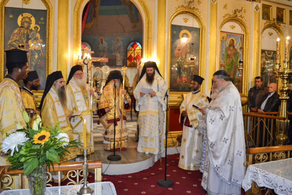 Στη Θεία Λειτουργία προεξήρχε ο Σεβασμιώτατος Μητροπολίτης Κατάνγκας κ. Μελέτιος, συλλειτουργούντων του Σεβασμιωτάτου Μητροπολίτη Κινσάσας κ. Θεοδοσίου, καθώς και των Θεοφιλεστάτων Επισκόπων Τολιάρας & Νοτίου Μαδαγασκάρης κ. Προδρόμου και Κωνσταντιανής κ. Κοσμά. Το ιερό κήρυγμα της ημέρας εκφώνησε ο Σεβασμιώτατος Μητροπολίτης Κινσάσας κ. Θεοδόσιος.