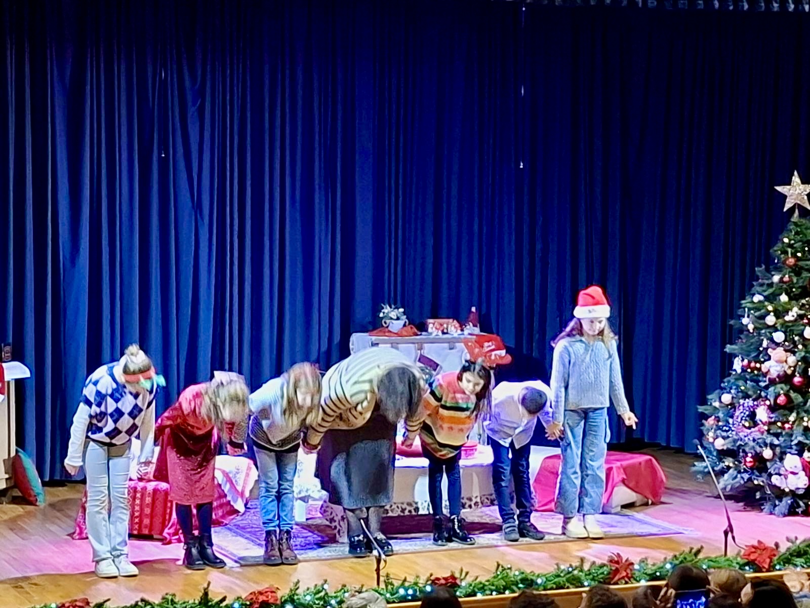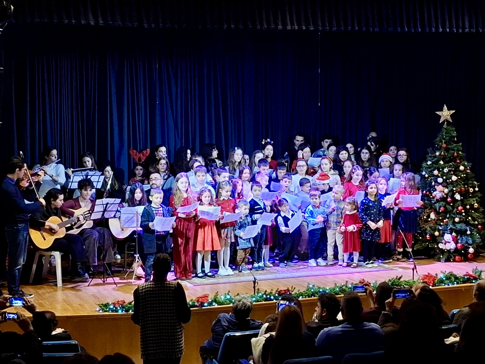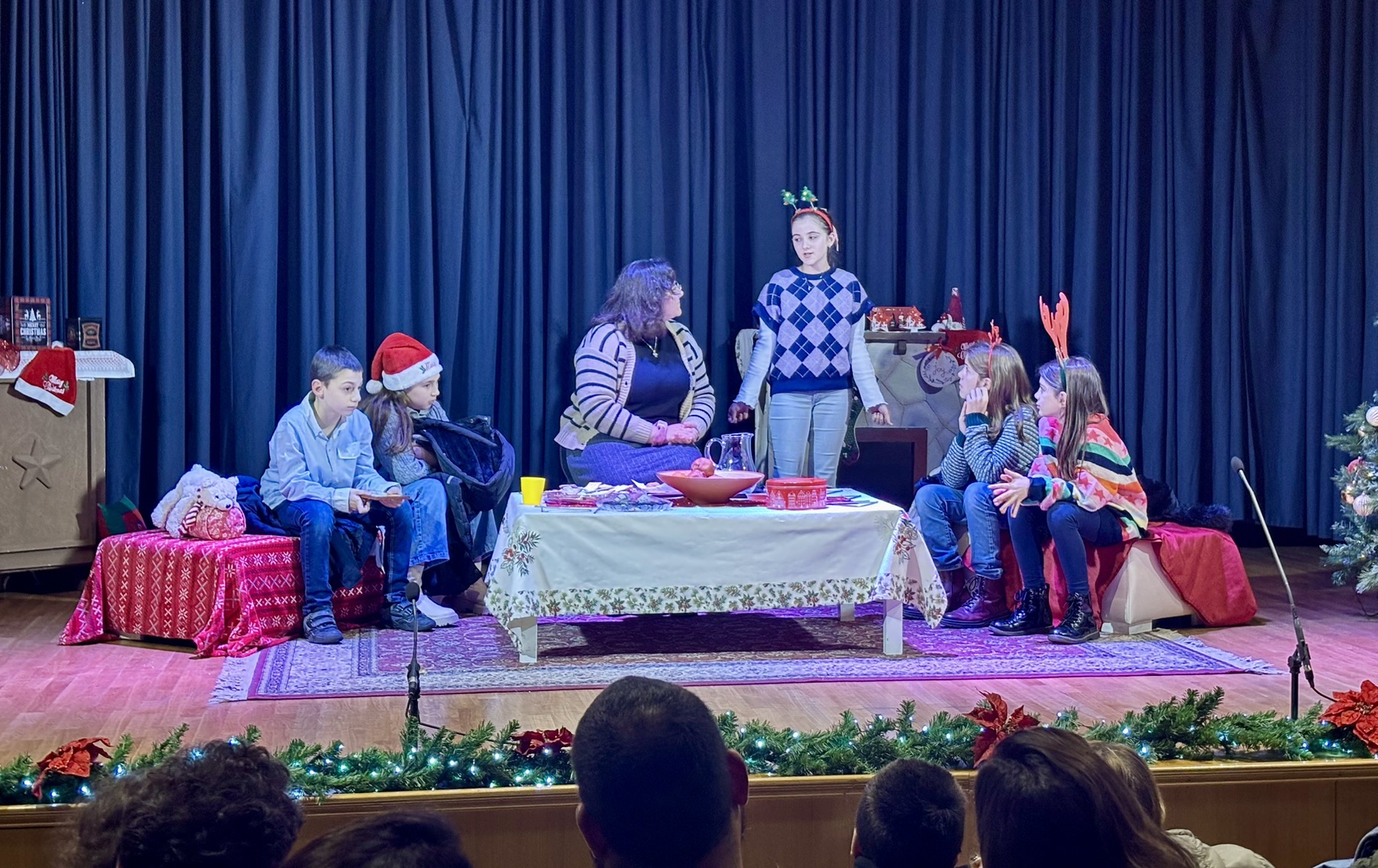 Η γιορτή ξεκίνησε με τη μεγάλη χορωδία, η οποία απέδωσε με θαυμάσιο τρόπο χριστουγεννιάτικους ύμνους και τραγούδια. Ακολούθησαν ποιήματα από τα παιδιά του Δημοτικού, γεμάτα όμορφα νοήματα. Στη συνέχεια παρουσιάστηκε το θεατρικό μας έργο, αφιερωμένο στα έθιμα της Πρωτοχρονιάς, το οποίο ανέδειξε με ζωντάνια και χαρά την ελληνική ορθόδοξη χριστιανική παράδοση. Το πρόγραμμα συνεχίστηκε με ποιήματα από τα παιδιά του Νηπιαγωγείου και ολοκληρώθηκε με τη χορωδία των μικρών παιδιών, που μας χάρισε τα χριστουγεννιάτικα κάλαντα και γέμισε τον χώρο με χαμόγελα και ελπίδα.