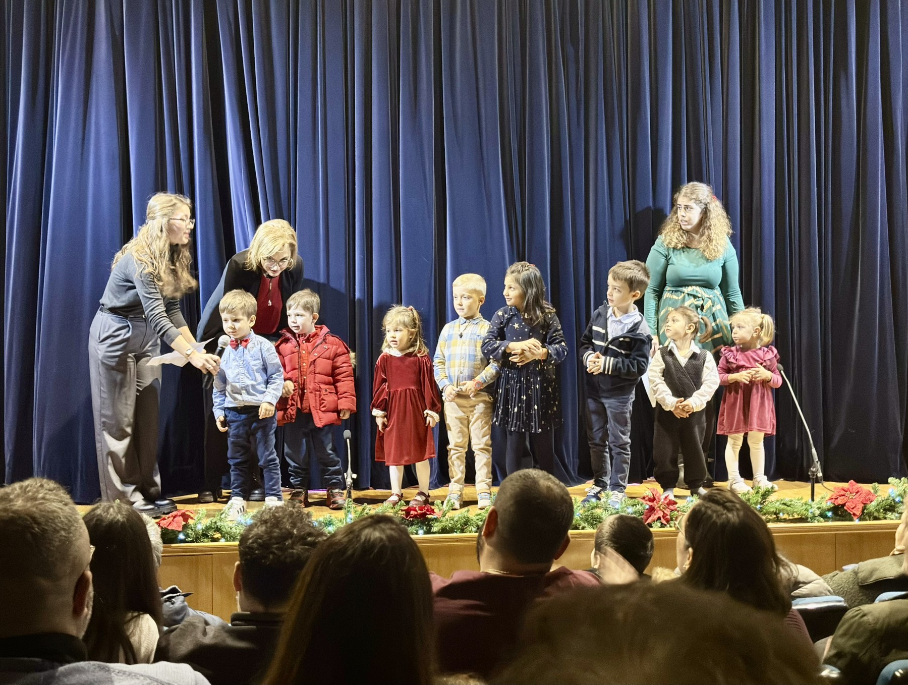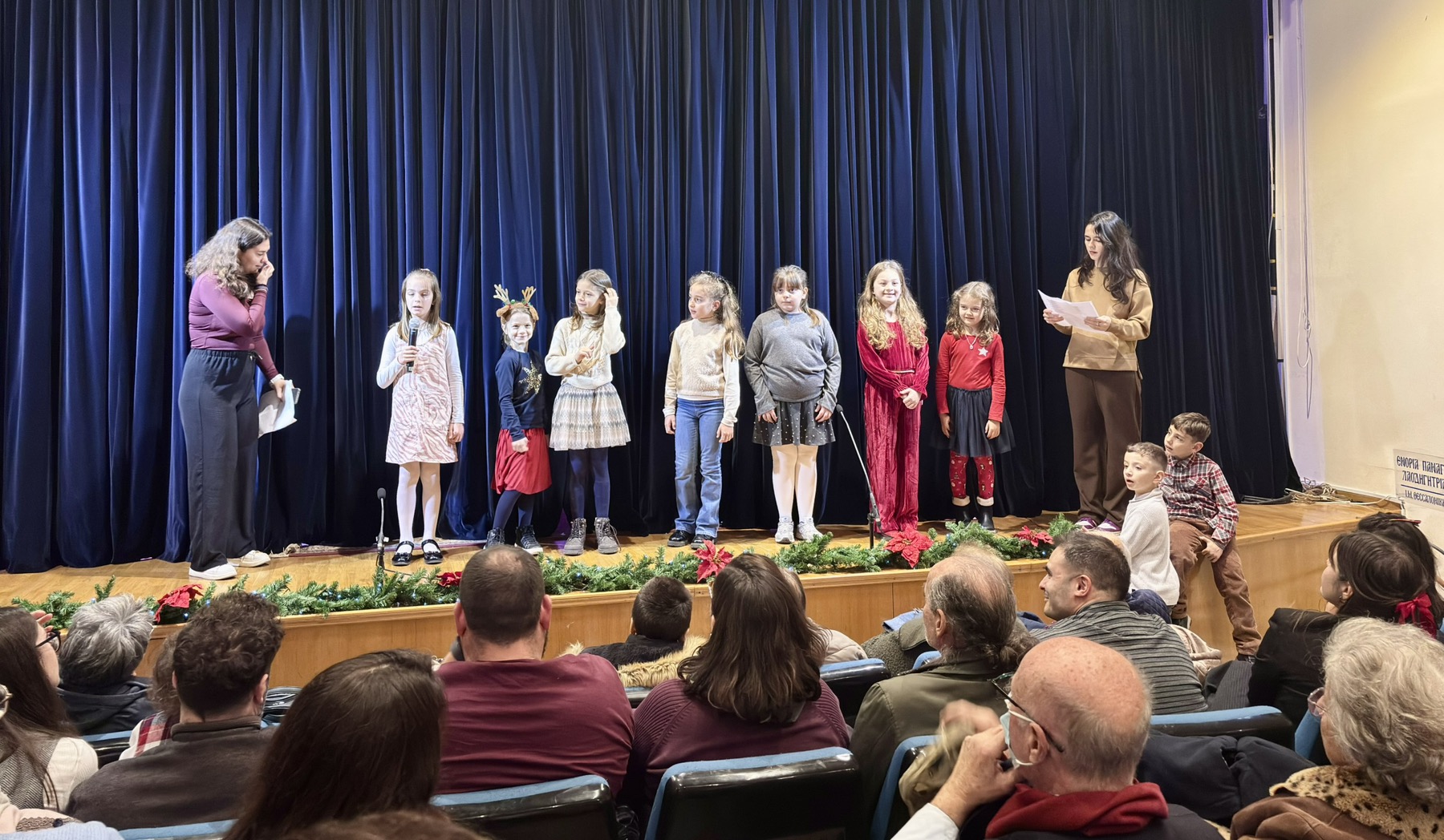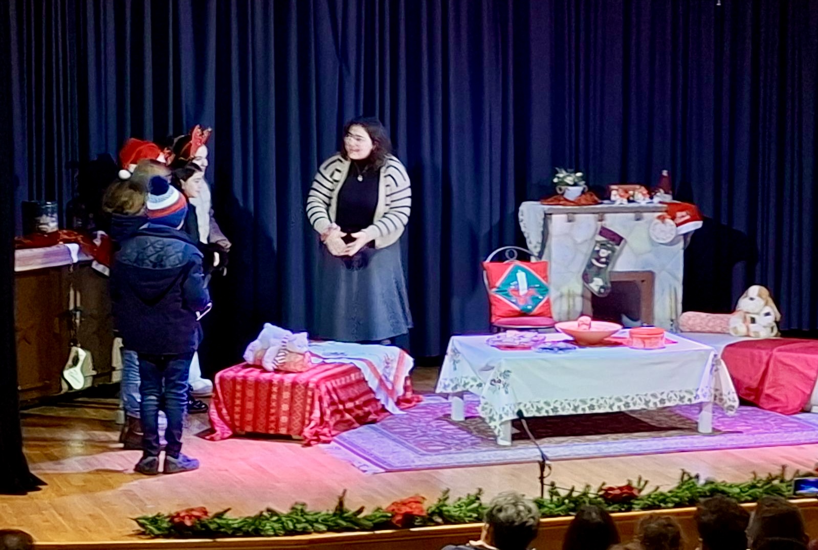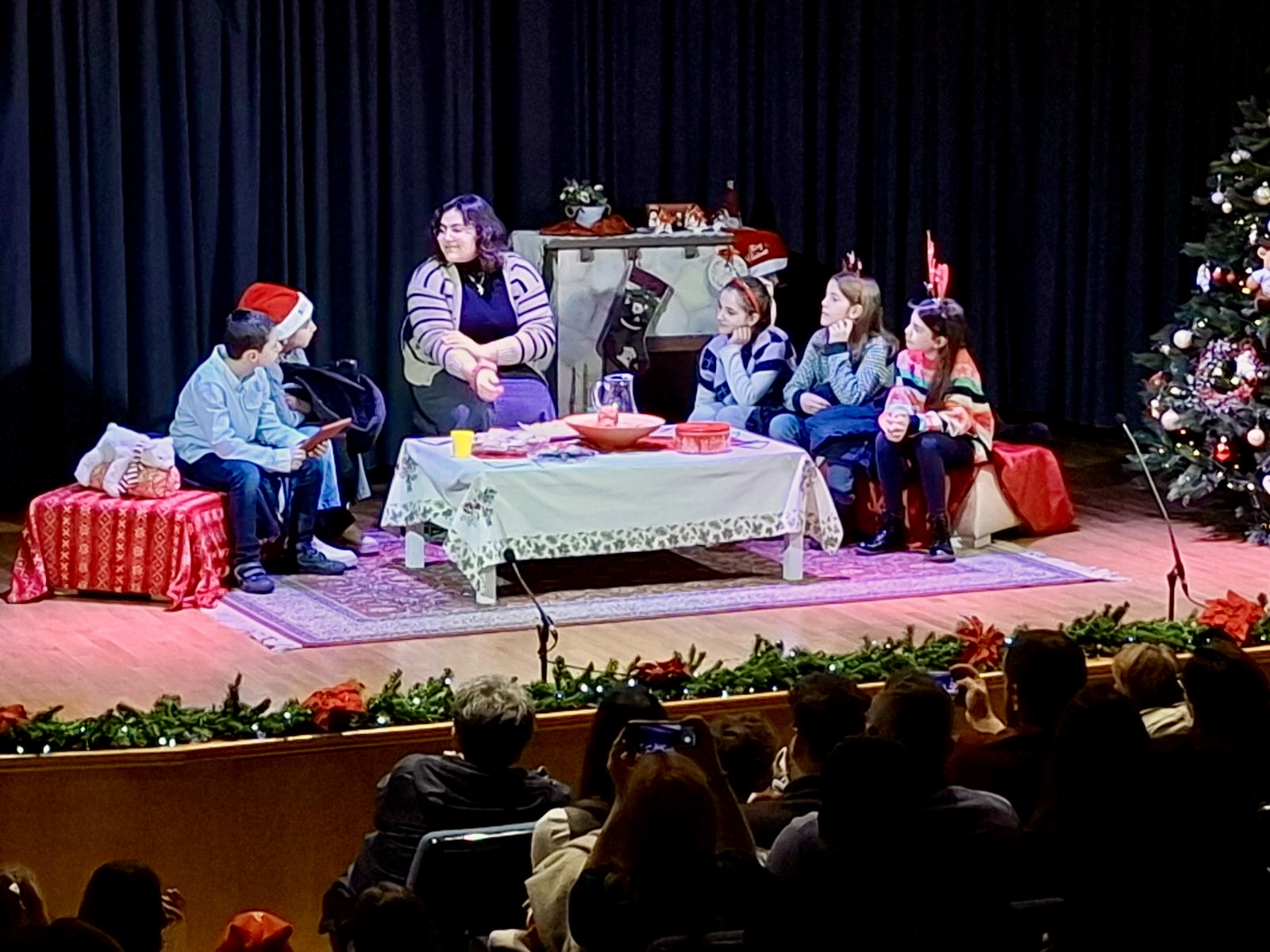 Η γιορτή ξεκίνησε με τη μεγάλη χορωδία, η οποία απέδωσε με θαυμάσιο τρόπο χριστουγεννιάτικους ύμνους και τραγούδια. Ακολούθησαν ποιήματα από τα παιδιά του Δημοτικού, γεμάτα όμορφα νοήματα. Στη συνέχεια παρουσιάστηκε το θεατρικό μας έργο, αφιερωμένο στα έθιμα της Πρωτοχρονιάς, το οποίο ανέδειξε με ζωντάνια και χαρά την ελληνική ορθόδοξη χριστιανική παράδοση. Το πρόγραμμα συνεχίστηκε με ποιήματα από τα παιδιά του Νηπιαγωγείου και ολοκληρώθηκε με τη χορωδία των μικρών παιδιών, που μας χάρισε τα χριστουγεννιάτικα κάλαντα και γέμισε τον χώρο με χαμόγελα και ελπίδα.