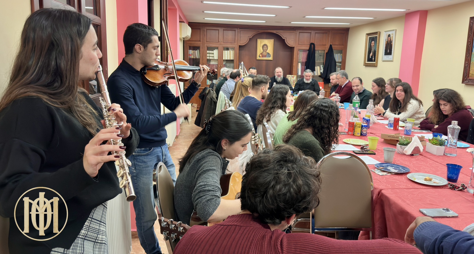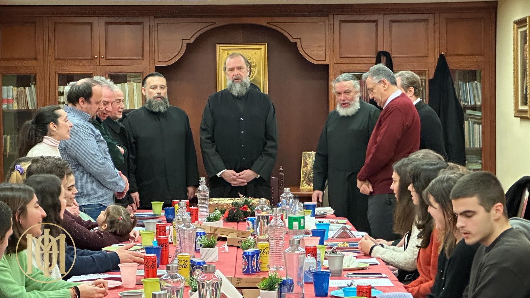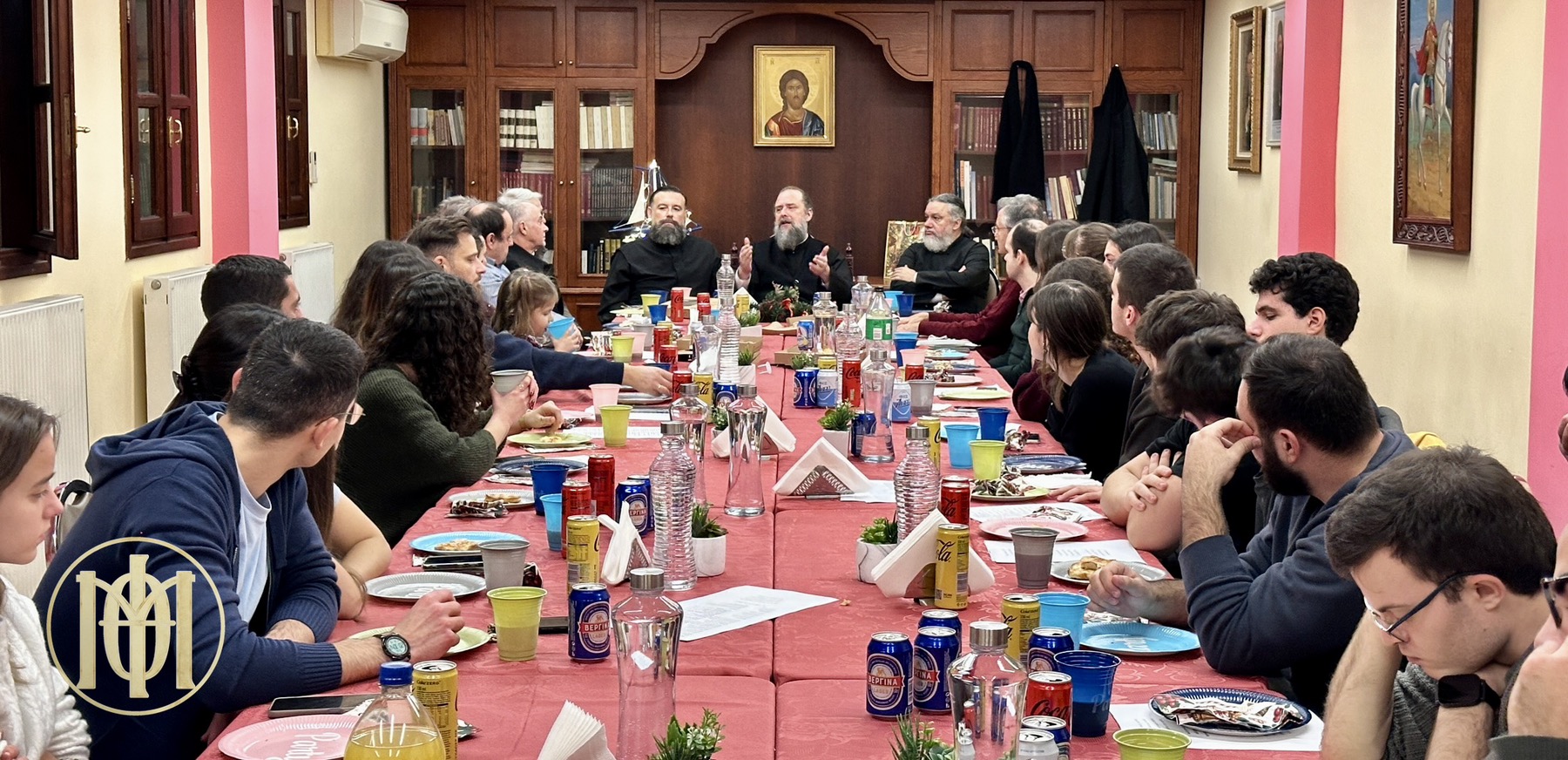 Η σύναξη ξεκίνησε με τρόπο νεανικό και αυθόρμητο, καθώς πριν την τήρηση του πρωτοχρονιάτικου εθίμου, τιμήσαμε πρώτα το δικό μας… «έθιμο» της… «Βασιλό-πιτσας»! Απολαύσαμε το φαγητό μας σε ένα πολύ όμορφο και οικογενειακό κλίμα, συντροφιά με τον Ποιμενάρχη μας.