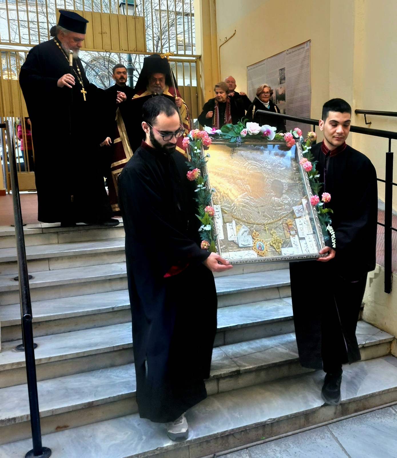 Την Παρασκευή 6 Μαρτίου 2026, κατά την Ακολουθία των Β΄ Χαιρετισμών της Μεγάλης Τεσσαρακοστής, η ενορία μας είχε την ιδιαίτερη ευλογία και χαρά να υποδεχθεί στον Ιερό Ναό Αγίου Μηνά το αντίγραφο της θαυματουργού εικόνος της Παναγίας της Βουρλιωτίσσης.
